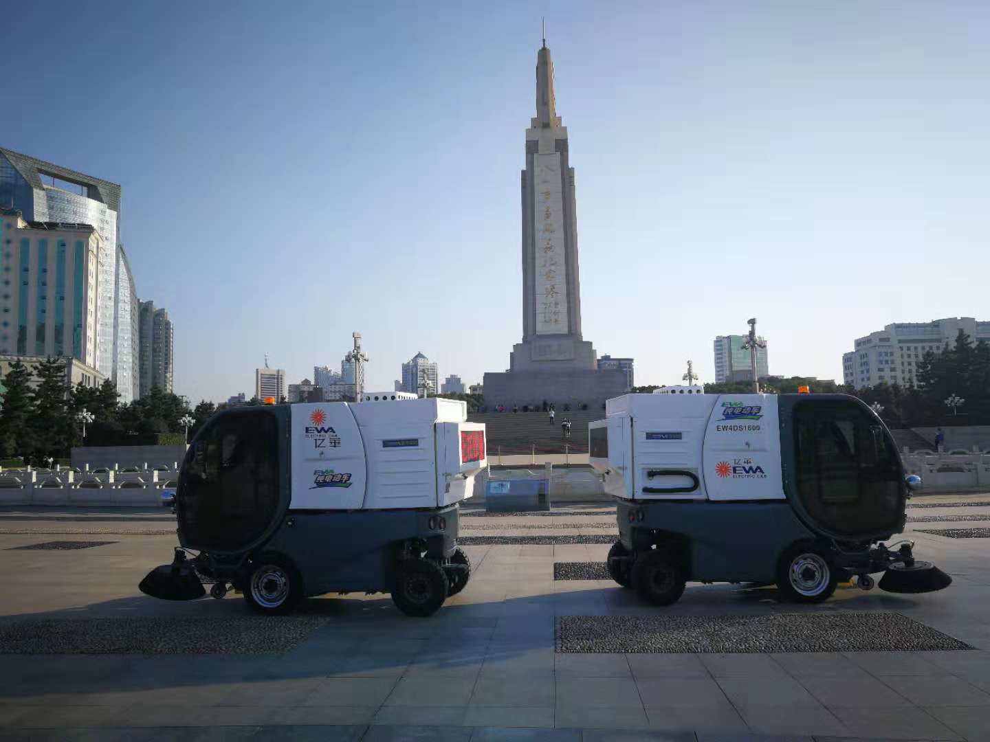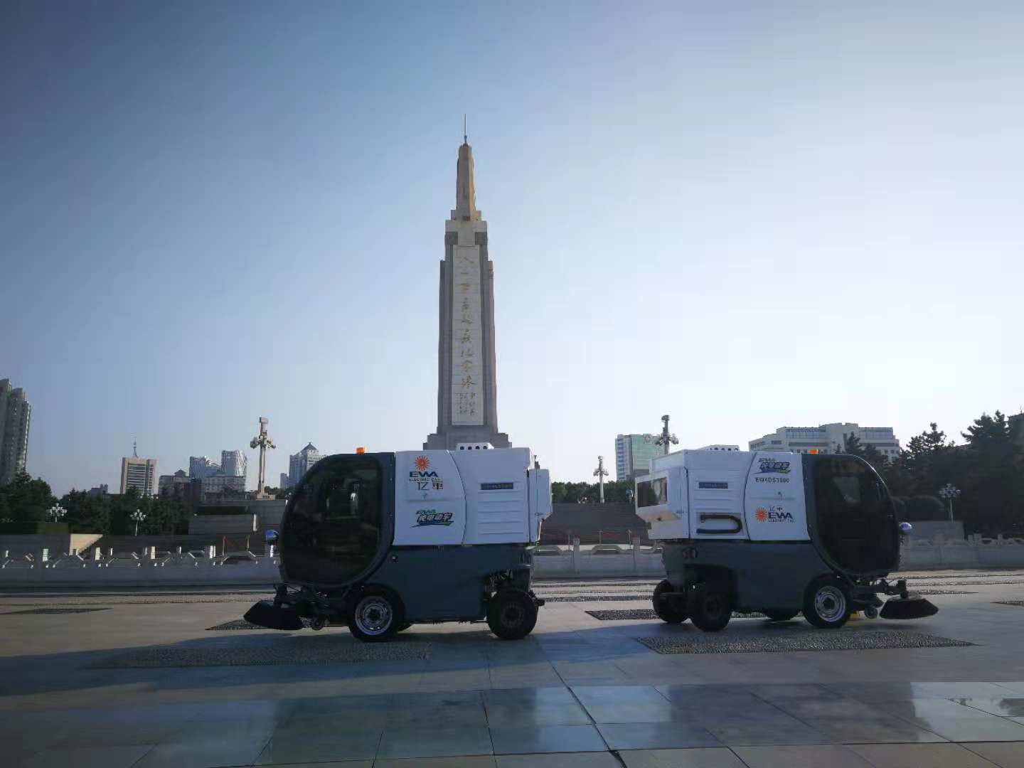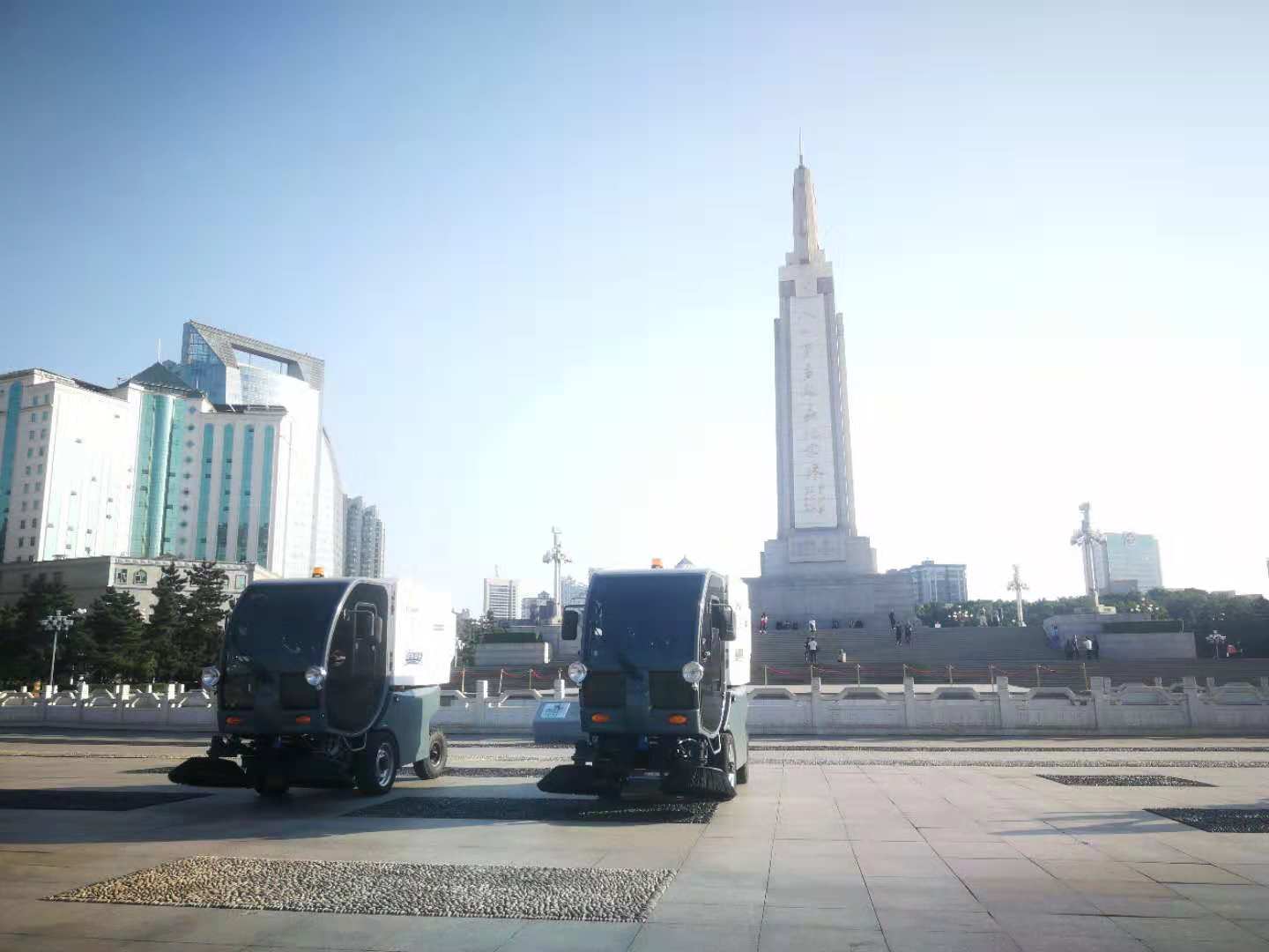 翰邦电动扫地车驻守八一广场,场面威武霸气,并且有媒体朋友前来取材进行专题报道。