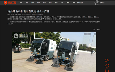 应用在八一广场,各方媒体前来报道。今日大江网对八一广场上的新能源环卫扫道车进项了专题介绍,在图说赣事板块发表了一篇名为“南昌纯电动扫道车首次亮相八一广场”的文章,文章中有详细介绍这两台电动扫地车的情况,并称之为机器人。