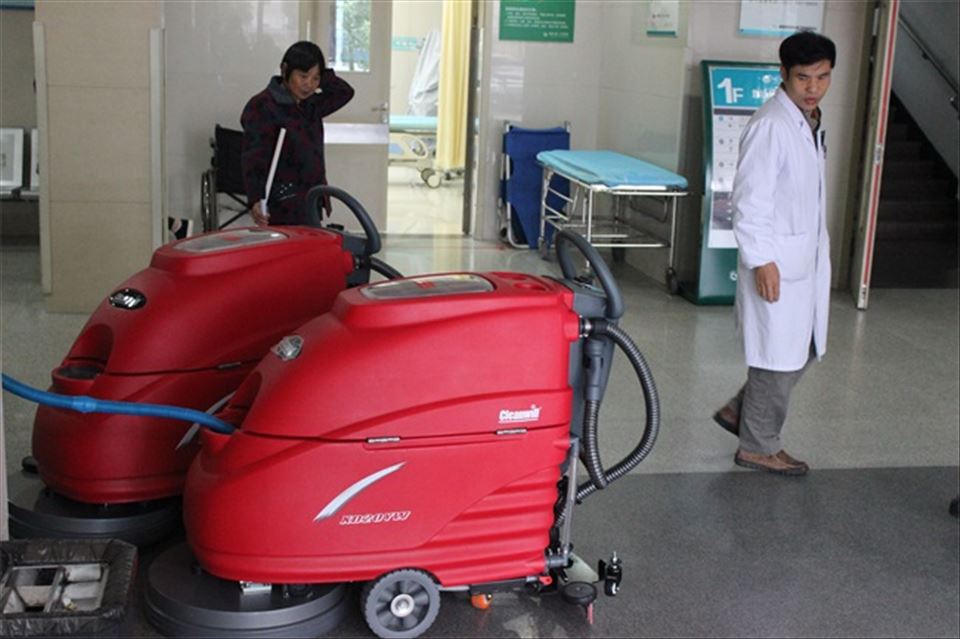 门诊,日日人山人海,相信不用多描述,从各大媒体上或者已经亲身体验与感受过场面,人多,产生的垃圾必然多,特别是在雨雪天气,如何快速有效的清除地面的水渍,保障地面的干燥洁净,这里就不得不提到我们的洗地机。使用洗地机做保洁,集洗地与干地于一体的清洁设备,能够最大程度的杜绝细菌因为地面潮湿,肮脏而滋生问题,又因洗地机高速的清洁效率,能快捷的完成整个门诊地面的清洁,手推式洗地机机身小巧,操作灵活、方便,清洁无死角,能给患者和医生一个舒适的环境。