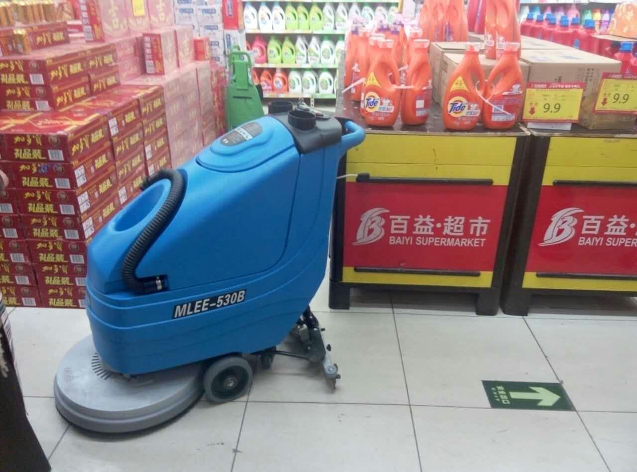 南昌手推式洗地机服务于全国各地各大超市、物业,越来越受到客户的欢迎。南昌手推式洗地机530B是一款由电瓶驱动的自动清洁设备,执行严格的无噪音污染标准,配合使用专业的刷盘,工作十分安静。这款洗地机针对狭小、拥挤或不规则的区域的日常清洁工作而设计,工作时灵活轻便,并有着非常彻底的清洁效果。因此非常适合学校、医院、超市、车站、科研机构以及养老院等场所的使用。