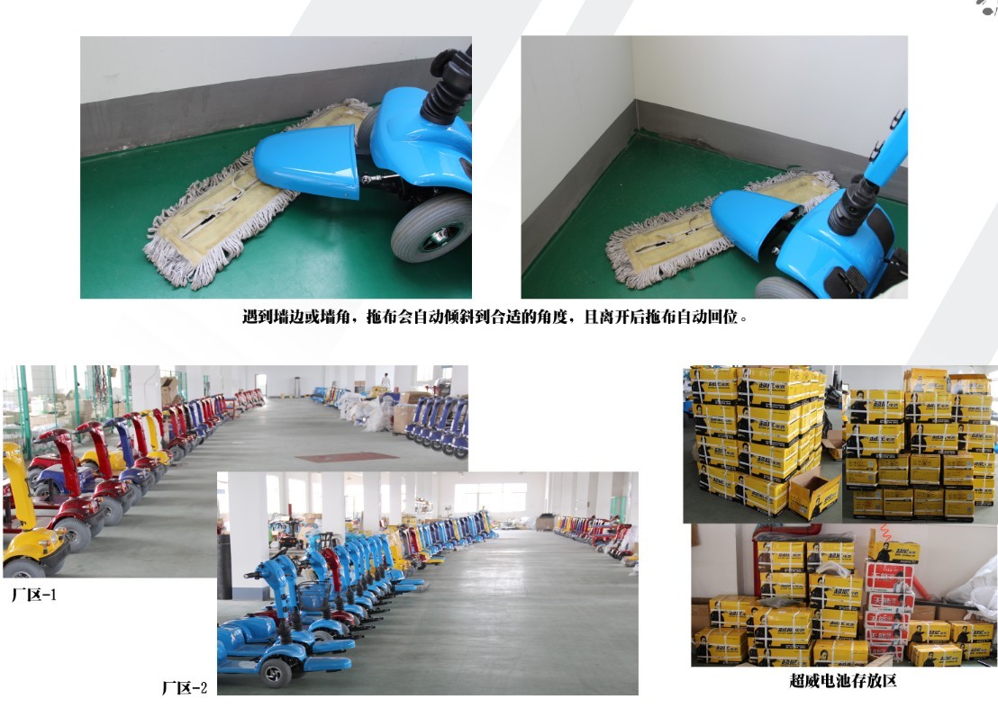 电动尘推车是一种由单人坐驾作业,电瓶直流驱动,通过前后的集尘架对地面进行高效清洁作业的专用清洁机械。电动尘推车适用的地面类型有水磨石、大理石、花岗石、人造石、地砖、PVC、精钢沙、环氧等,这是在应用方面跟洗地机是一致的。洗地机通过刷盘与吸扒将地面清洁赶紧并将污水带走,电动尘推车是通过前后的集尘架带有一定的压力将地面拖干净,跟拖把是一样的原理,只不过电动尘推车是驾驶作业,省心省力,效率高。