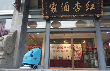 正是由于530B具有以上高性能,价位低,性价比高,才得到这么多客户的亲睐,越来越多的客户指定用手推式洗地机530B,其在市场的反馈也越来越好。红杏酒家引进洗地机530B,奉上现场使用图。