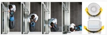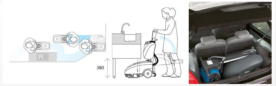 这款洗地机能够清除深层污垢。由于真空马达和水刮的组合,使其能够确保彻底的污垢收集和完美的干燥。由于采用抛物线形水刮,能够在刷子的侧面移动,使得这款洗地机成为能够在曲面周围进行清洗和完美干燥而不需沿直线移动的洗地机。清洁完毕,能够将整个刷盘立起,最大限度保护盘刷,也便于携带运输。