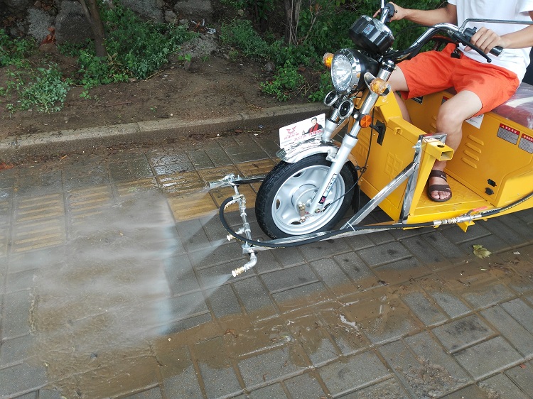 高压冲洗车走上街道,大大解决了人行道脏乱的环境,首先是将人行道上的垃圾清扫,其次是将人行道旮旯缝隙都冲刷干净,经过高压冲洗车冲洗的地面,超洁净。