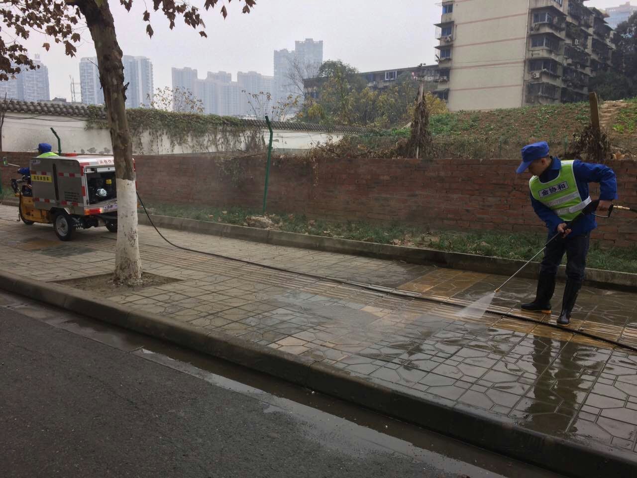 走上街道,这个机械保洁工作再无死角。有灰尘,有泥土,经过高压冲洗车冲洗,一干二净;有死角,有旮旯缝隙污垢,用高压冲洗车高压喷枪直接冲洗,完全无残留。