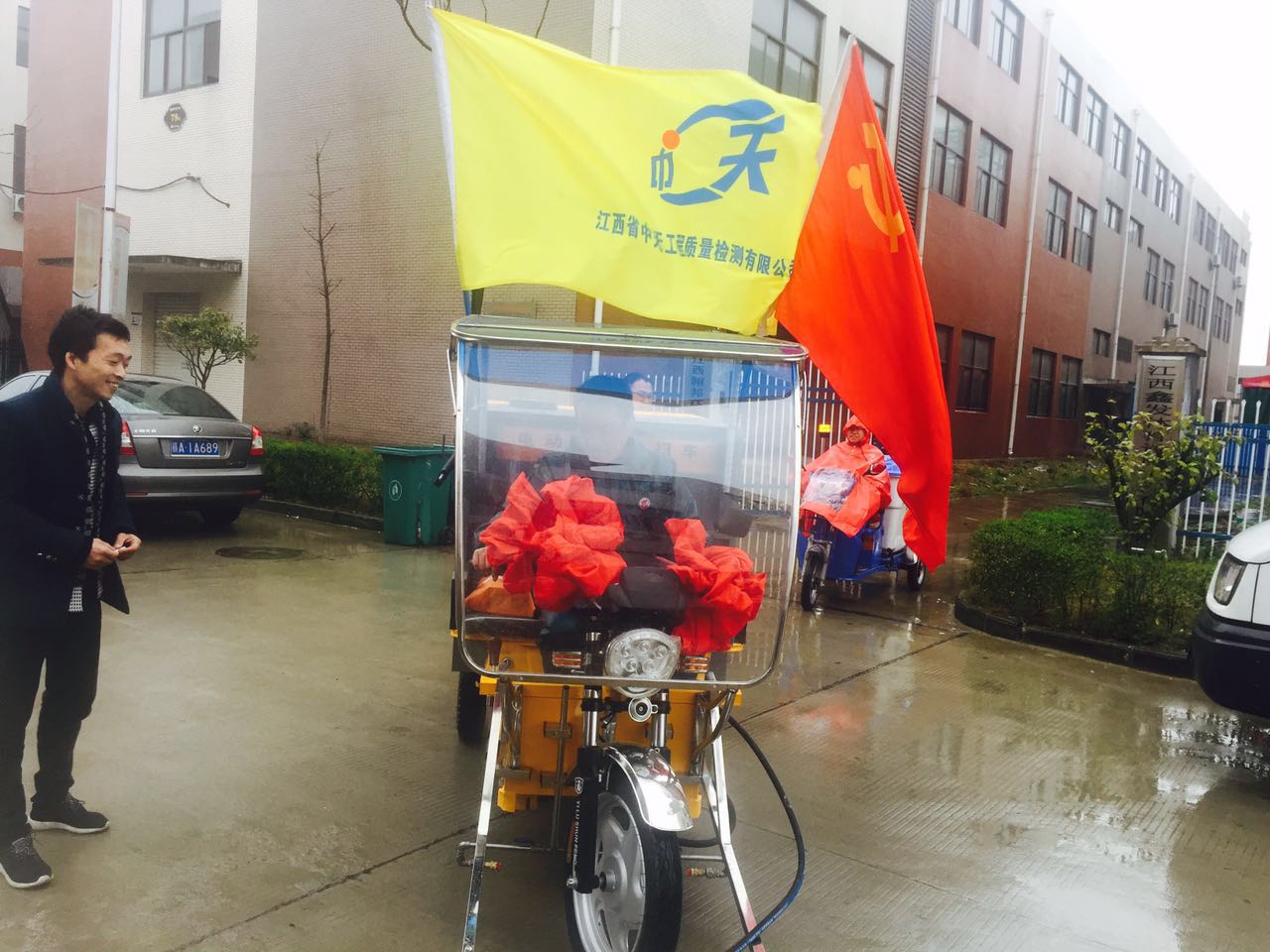 的交付,应客户要求给高压水扫车绑上旗帜绑上大红花,我们高压水扫车好似出嫁的姑娘,欢欢喜喜去婆家啦!