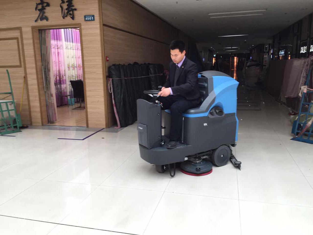 1.驾驶式洗地机能够给清洁工人一种驾驭感,操作起来更舒适、轻松、体面。
