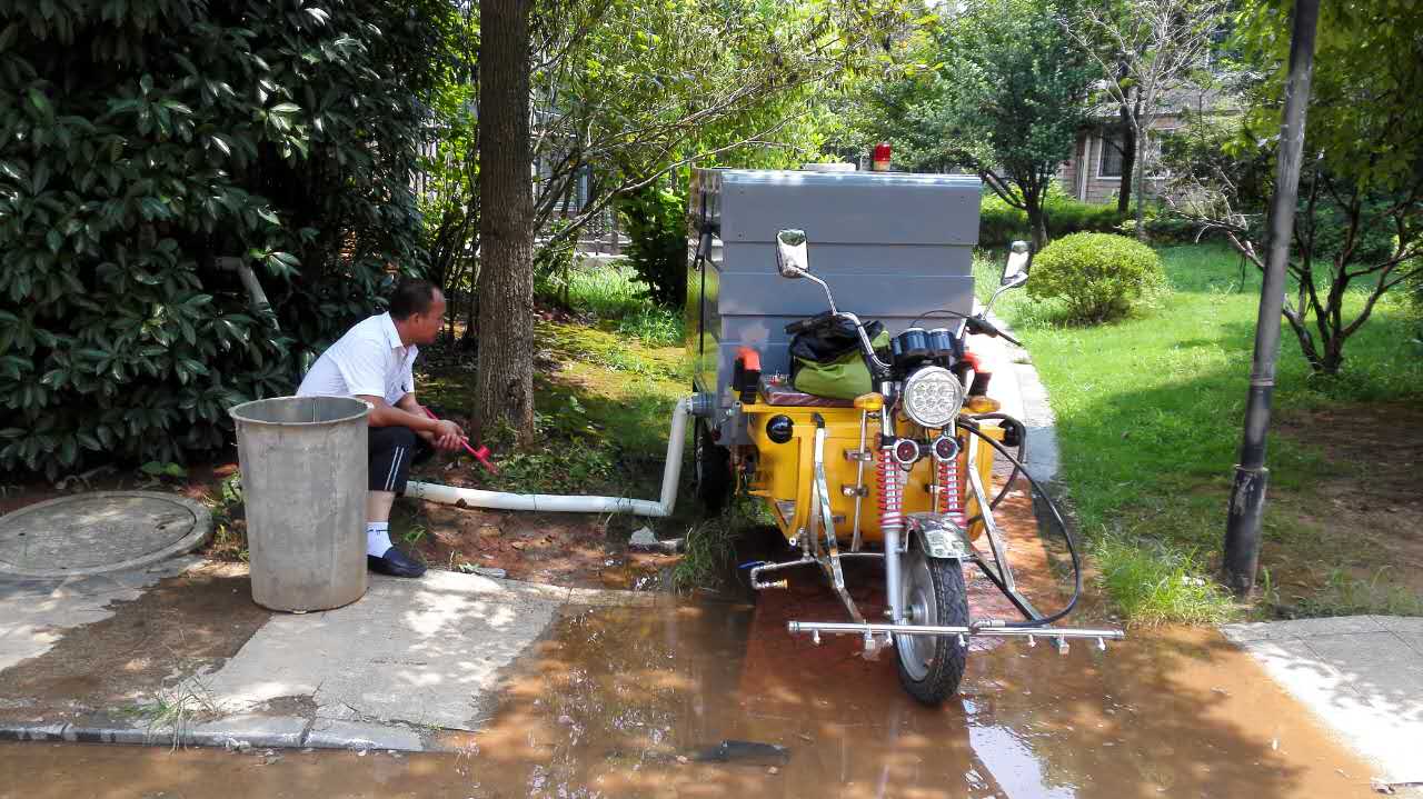 一台江西三轮冲洗车交付于江西某大型物业公司,应用在高校的校园保洁中,用于清理人行道路面及周边小广告的清洗,非常灵活,清洗效果明显。