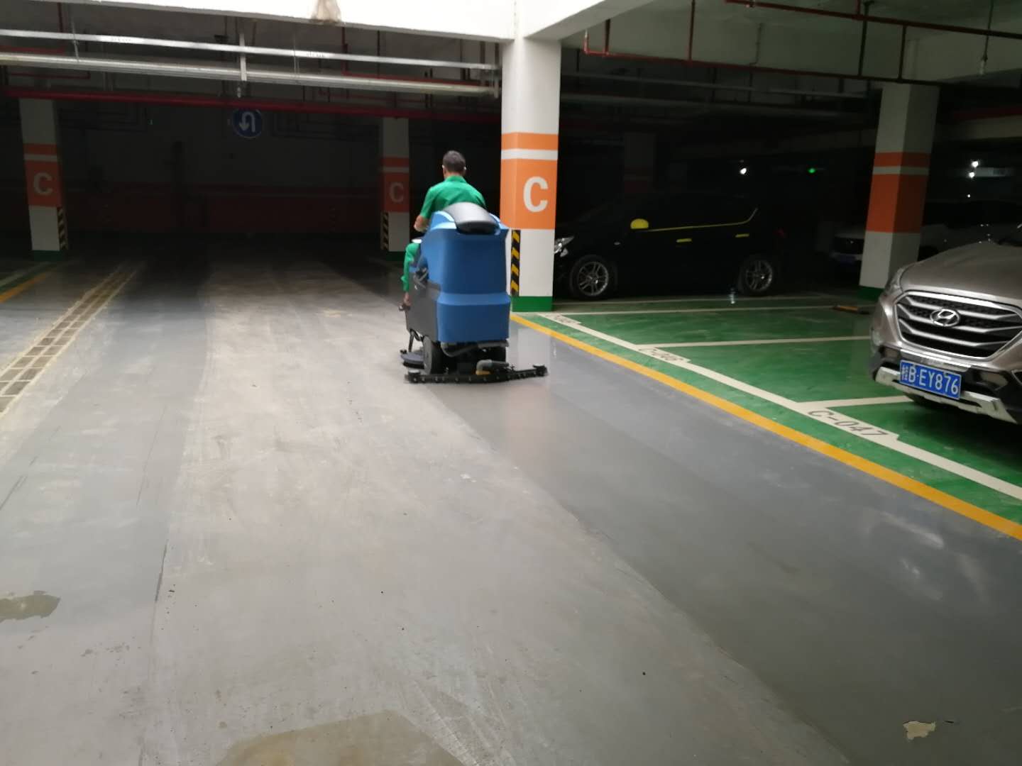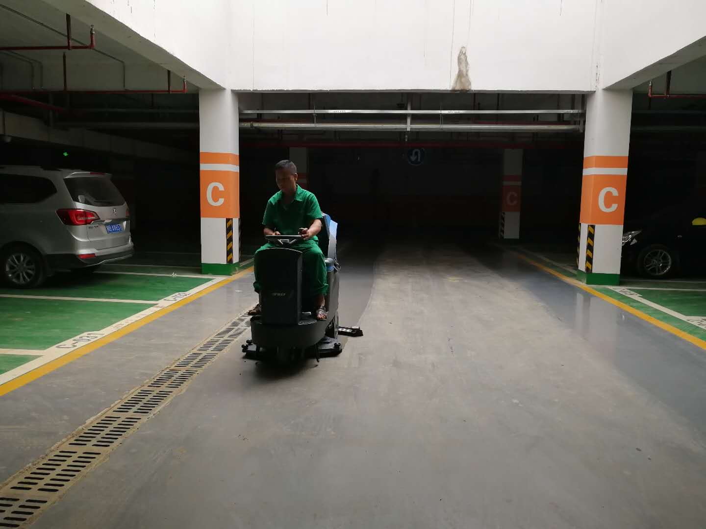 菲迈普驾驶式洗地机应用于江西某地下停车库,让我们一起来见证效果!
