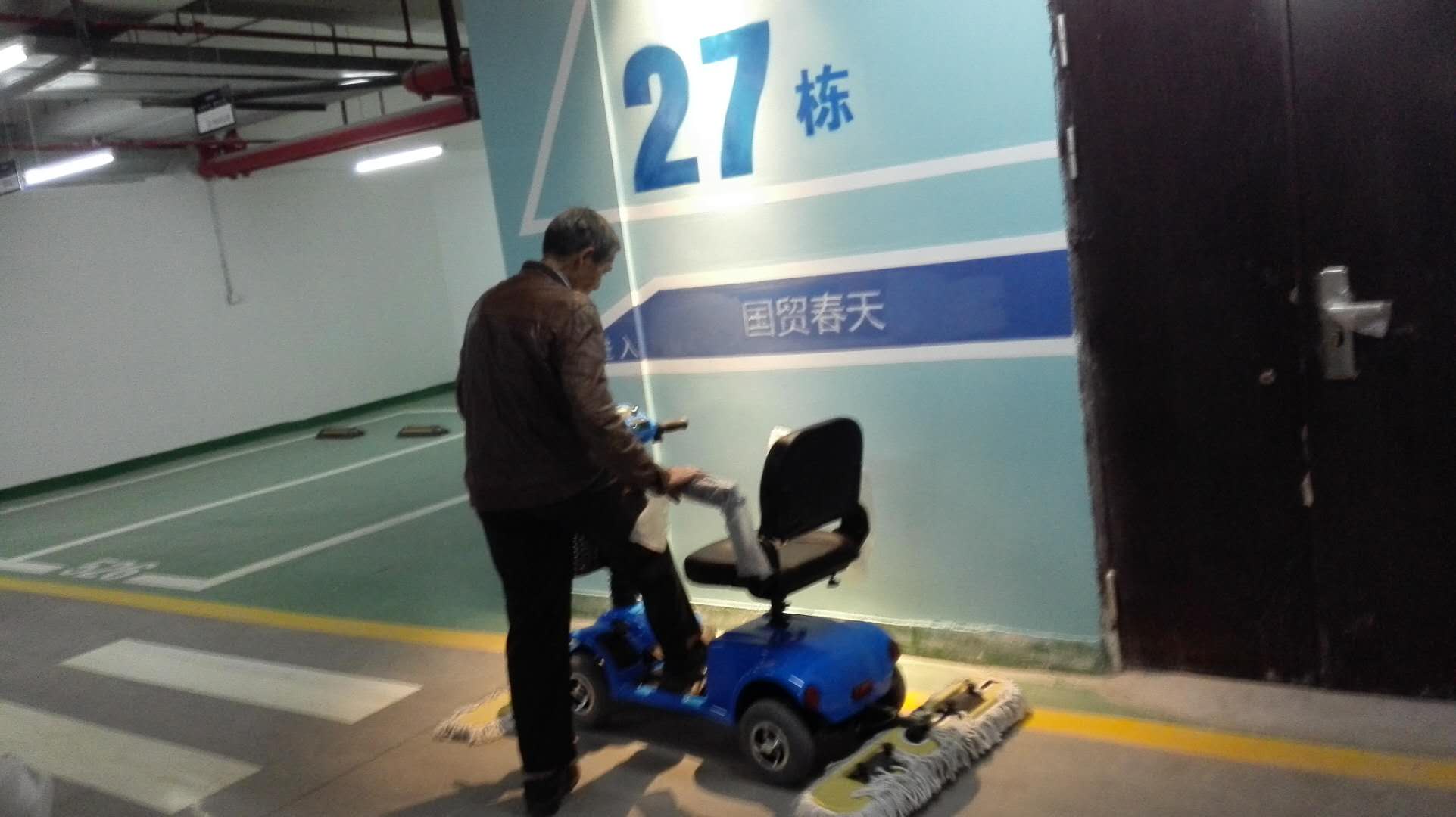 这不,我们的电动尘推车交付于南昌注明的楼盘---国贸春天,应用于地下车库的地面保洁。