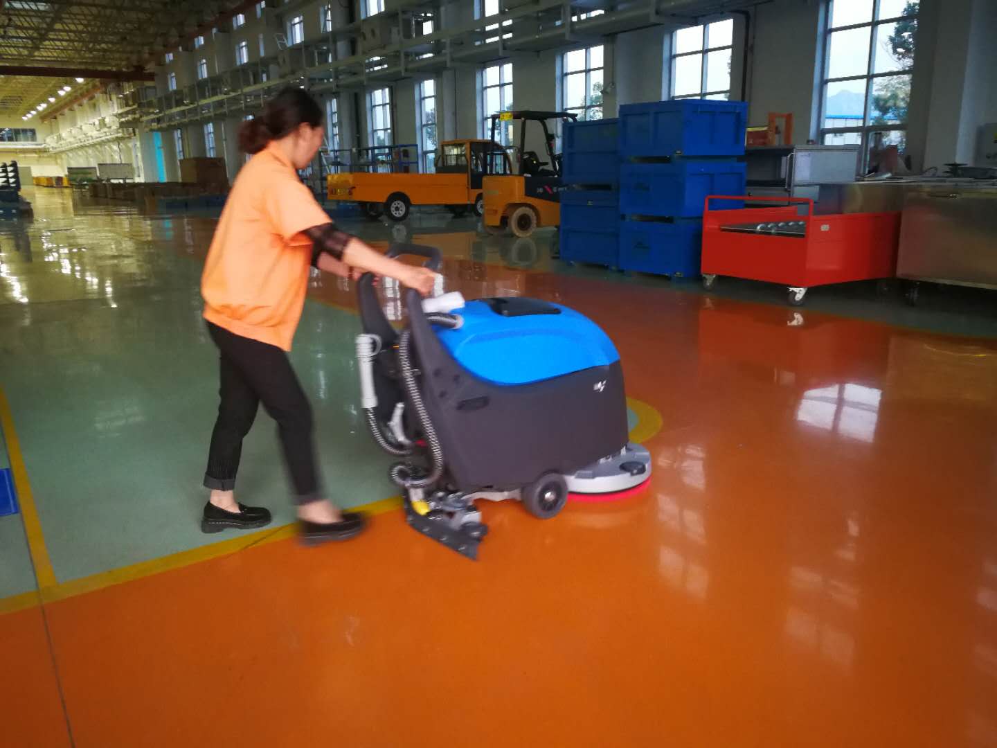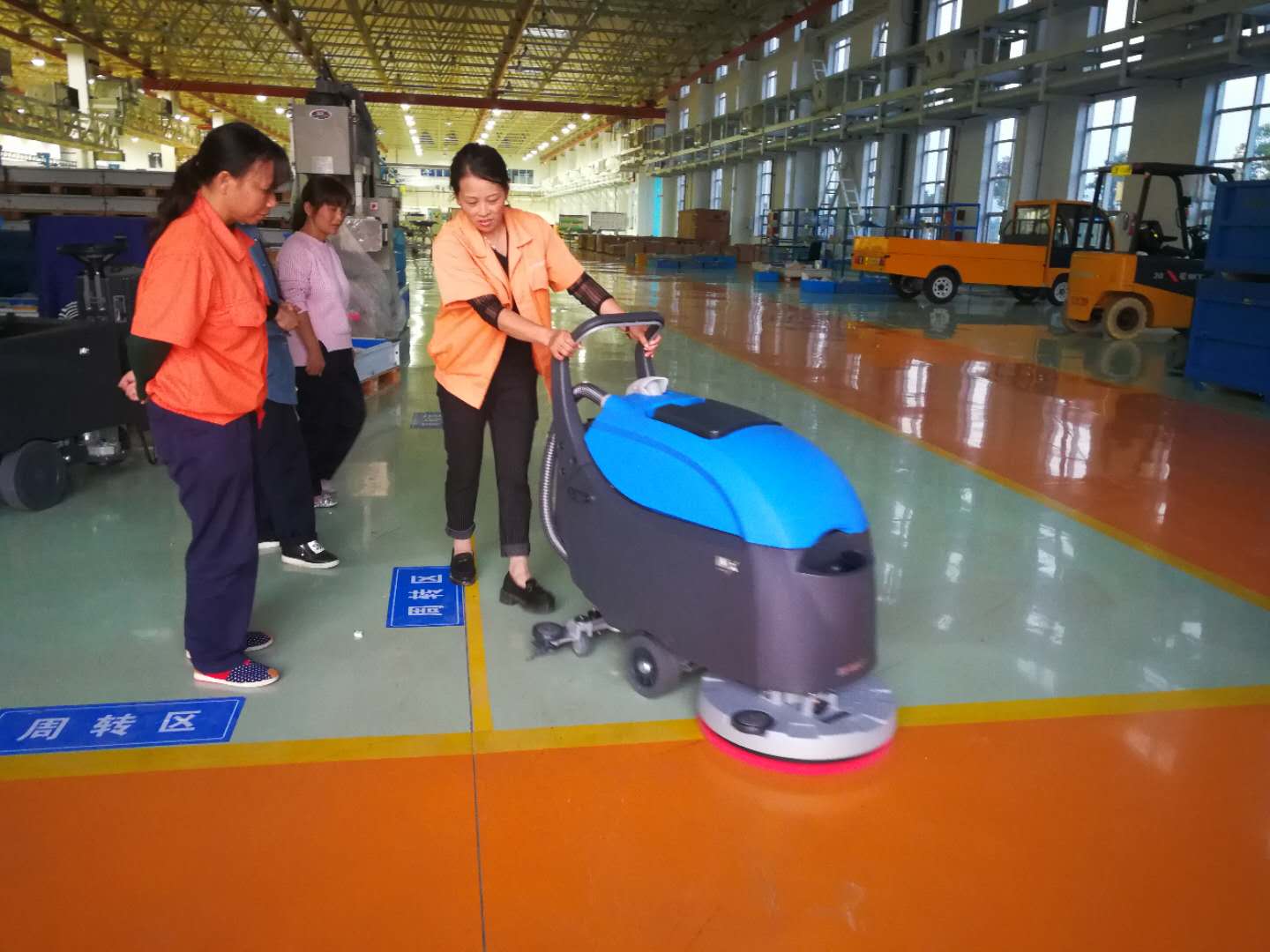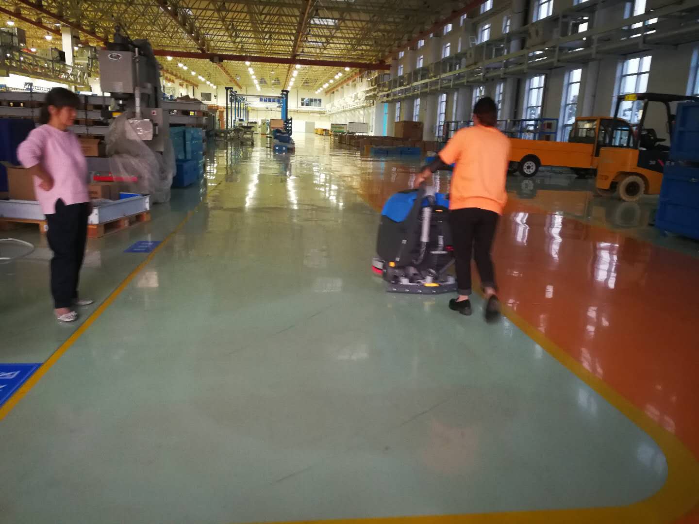 菲迈普手推式洗地机IMX20BB入驻昌飞工业集团。本次IMX20BB服务的是某机翼组装车间,鲜橘色的环氧地坪与我们机器蓝色形成一道风景线,在整个环境中给人带来新的体验。整个车间的环境卫生严格,要求一层不染,车间区域划分明显,并且多有辅助工具存在,利用手推式洗地机来进行地面的保洁,很好的利用其灵活性与便利性,经过菲迈普洗地机IMX20BB的清洗,地面更加透亮,连我们的保洁大姐都是不是露出会心一笑。