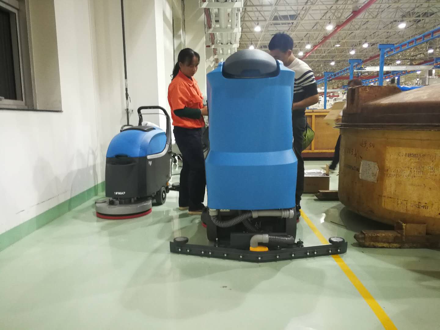 选择驾驶式洗地机MR85B与手推式洗地机IMX20BB是结合指定车间现实工况后的结果,事实证明,两者相辅相成。菲迈普MR85B在大范围内快速有效的清洗地面,IMX20BB在障碍物的边角死角进行扫尾工作,以及一些狭窄的人行道走廊进行灵活性操作,都是非常值得借鉴的。