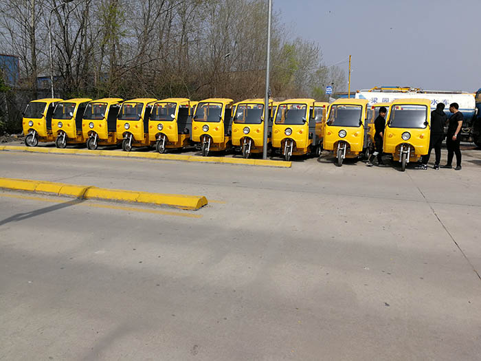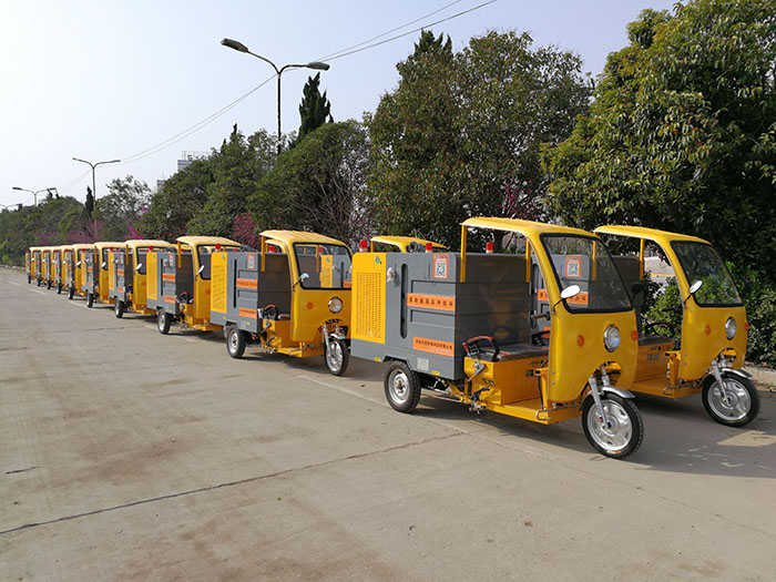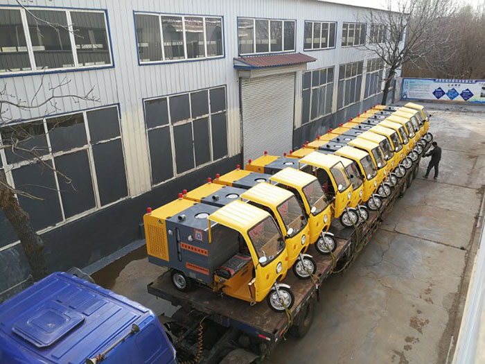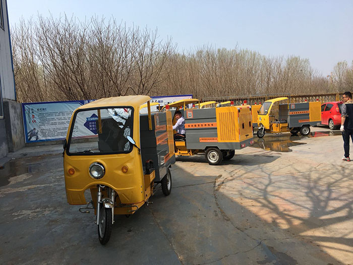 已经检验合格的三轮高压冲洗车在工厂正等待着出发!
